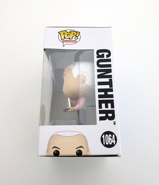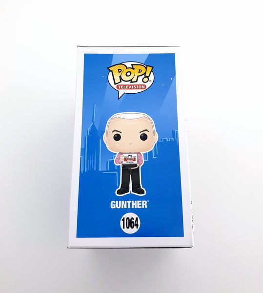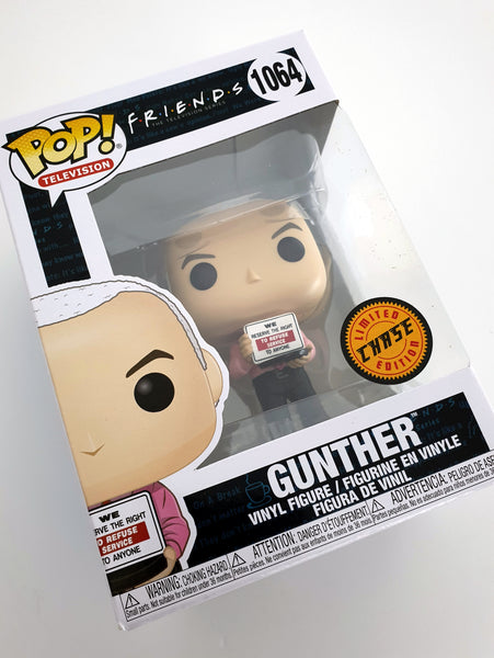 דמות פופ (בובת פופ) במהדורת צ'ייס (Chase) מוגבלת בגודל "3.75 (9.5 ס"מ) של Gunther מחזיק שלט (We Reserve The Right To Refuse Service To ANYONE), מהליין של F.R.I.E.N.D.S. (חברים, הסדרה האגדית).